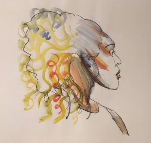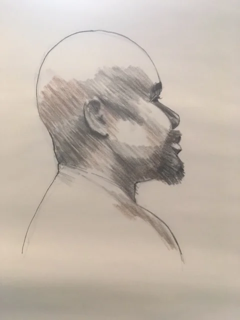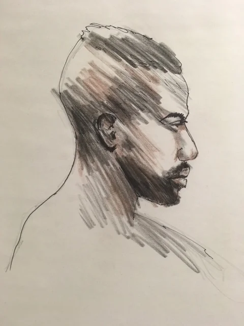 '30-min Self Portrait’ / 18x24 / charcoal pencil, ink marker, watercolor, color pencil